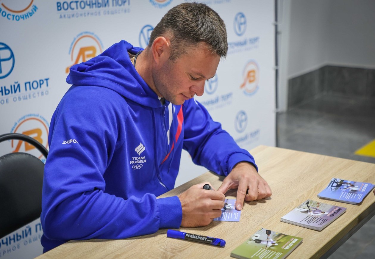 В завершении визита чемпион поучаствовал в автограф-сессии. И пообещал еще раз посетить Врангель и "Восточный" в этом году.