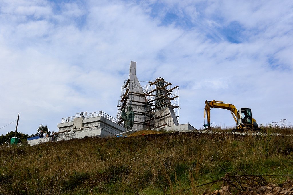Параллельно ведутся активные работы по реставрации самого монумента "Скорбящая мать". На территории мемориала заканчивается укладка брусчатки. Завершаются и работы по обновлению инженерных конструкций: выставляются парапетные крышки подпорной стенки, ведутся дополнительные работы по замене листов нержавеющей стали на пилонах. Основной контракт находится на стадии завершения.