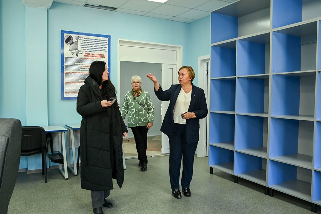 Одновременно с планетарием в школе заканчивается работа над современным IT-полигоном. Это пространство будет разделено на несколько функциональных зон, включая зону робототехники и программирования, оборудованную мобильными стульями и большим рабочим столом. Здесь студенты смогут собирать и программировать роботов, а также создавать квадрокоптеры и проводить соревнования.
