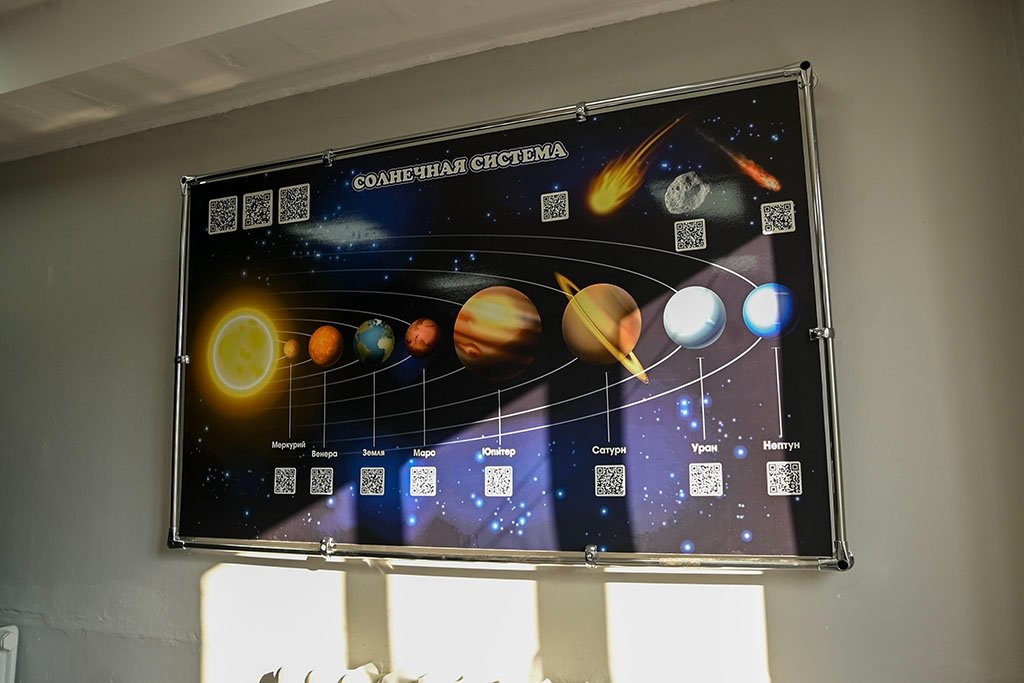 Основным элементом нового комплекса станет школьный планетарий. Главной особенностью этого объекта является надувной купол-экран, вмещающий десять кресел, что позволит ученикам наблюдать за звездами и астрономическими явлениями в режиме реального времени. В планетарии также будут установлены интерактивная астрономическая карта и интерактивная доска. Дополнительные места для учеников разместят по периметру комнаты, а для практических наблюдений здесь установят телескоп.