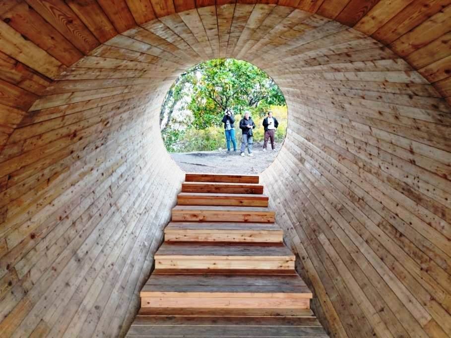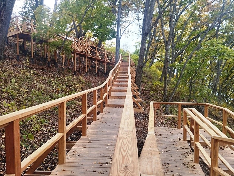 На участке "Монетка" полностью завершены работы по монтажу лестниц и стопопандусов (стопопандус также известен как итальянский пандус — это пологая лестница с низкими проступями и наклонными ступенями), которые уже обработаны противопожарной пропиткой и отшлифованы. Также завершены работы по прокладке траншеи для кабеля.