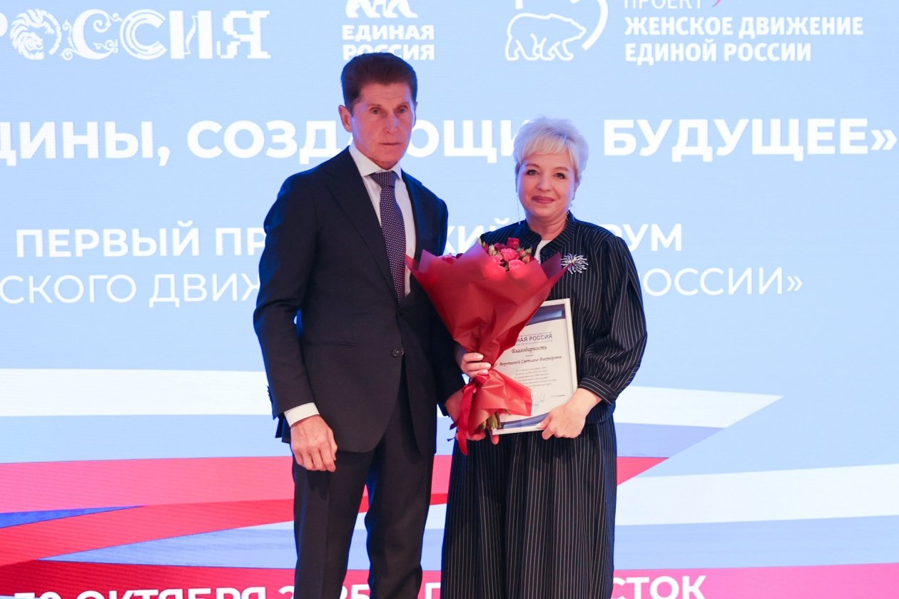 В ходе мероприятия губернатор вручил Благодарности Губернатора Приморского края отличившимся жительницам региона. Награды получили заместитель руководителя Приморского центра занятости населения Светлана Воропаева, руководитель направления по сопровождению проектной деятельности Центра поддержки предпринимательства Наталья Карпова, председатель регионального отделения общественной организации "Российское общество первой помощи", а также другие активные участницы проектов и организаций.