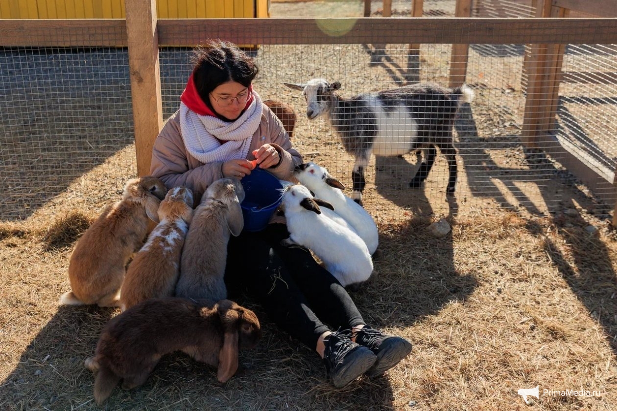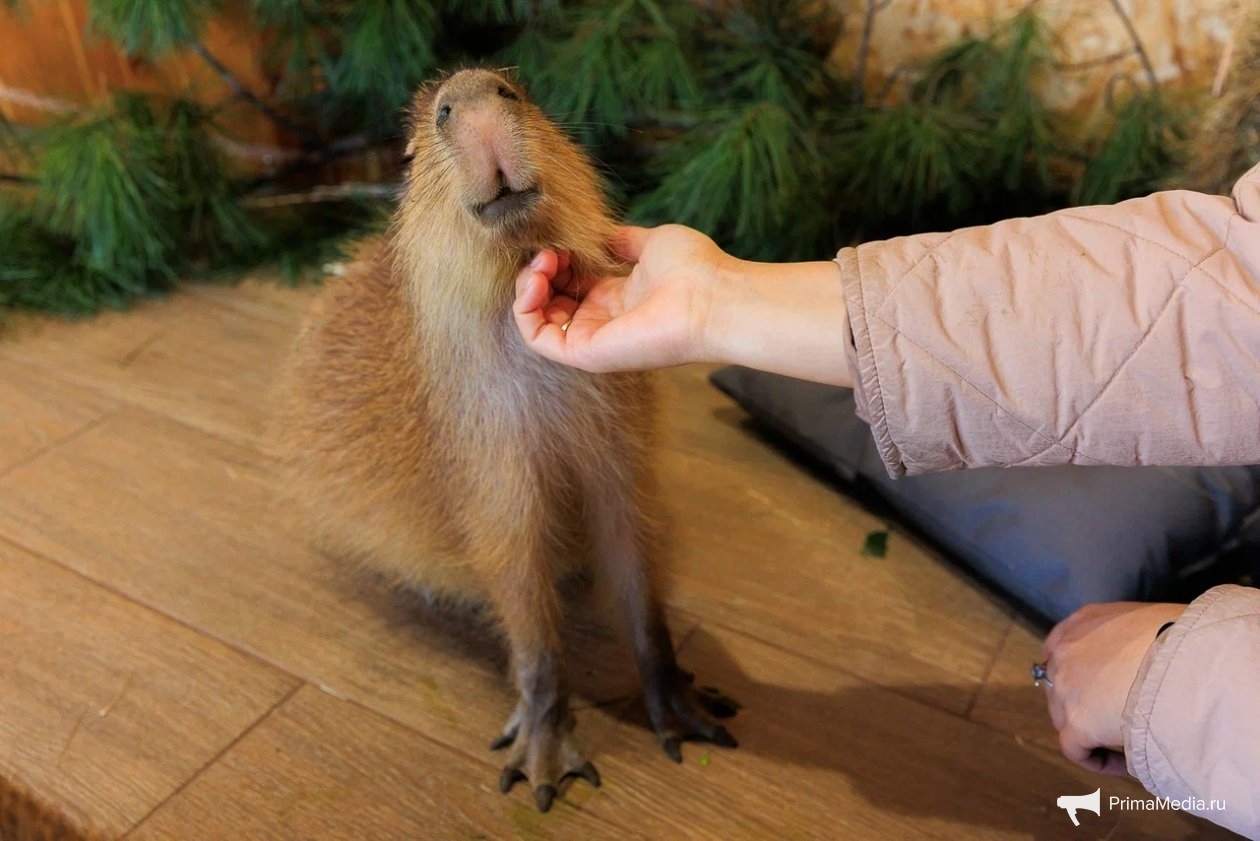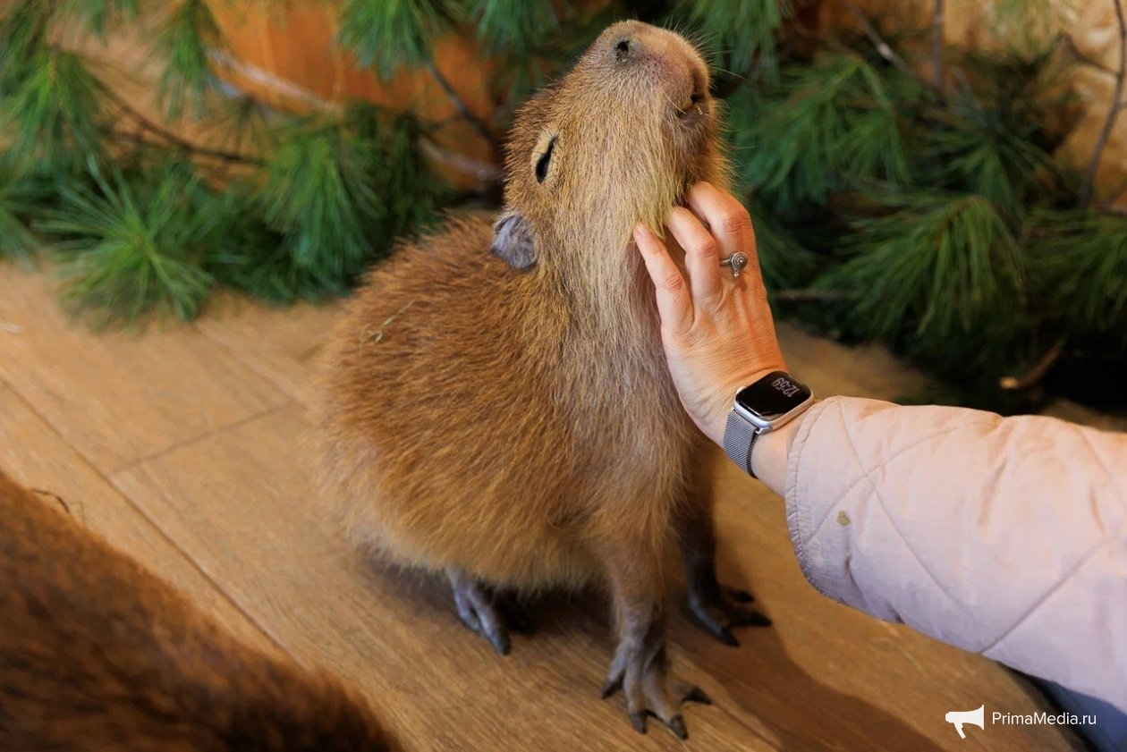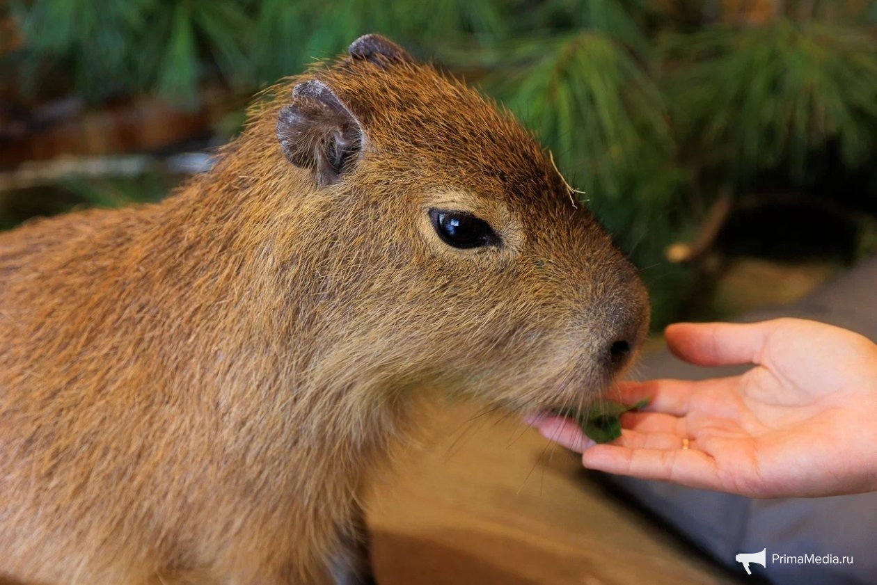 Пара капибар поселилась в 40 км от Владивостока этой осенью, став новыми обитателями фермы "Приморские альпаки". На прошлой неделе успешно завершился период адаптации животных и теперь с ними можно познакомиться лично, а не только наблюдать за их жизнью через окно. Корреспондент и фотограф ИА PrimaMedia посетили поселок Давыдовка Надеждинского района, где воочию увидели пушистых "антистрессов" и узнали, как им живётся на новом месте. Представитель фермы Мадина Новосад радушно рассказала об особенностях содержания этих необычных грызунов, их рационе и поведении.