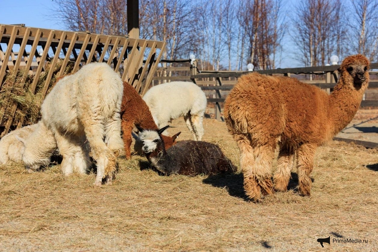 Мадина Новосад рассказала, что альпаки требуют особого ухода. Их необходимо регулярно вычесывать — шерсть у них особенная: зимой она распушается, удерживая тепло, а летом сжимается, пропуская воздух и помогая животному не перегреваться. Благодаря этому альпаки чувствуют себя комфортно в любую погоду. Конечно, в метель или дождь они предпочитают оставаться в домике. Одной из их особенностей является то, что при недовольстве альпаки могут плюнуть. Правда, обычно не в людей, а в сородичей — так они решают внутренние споры внутри стада.