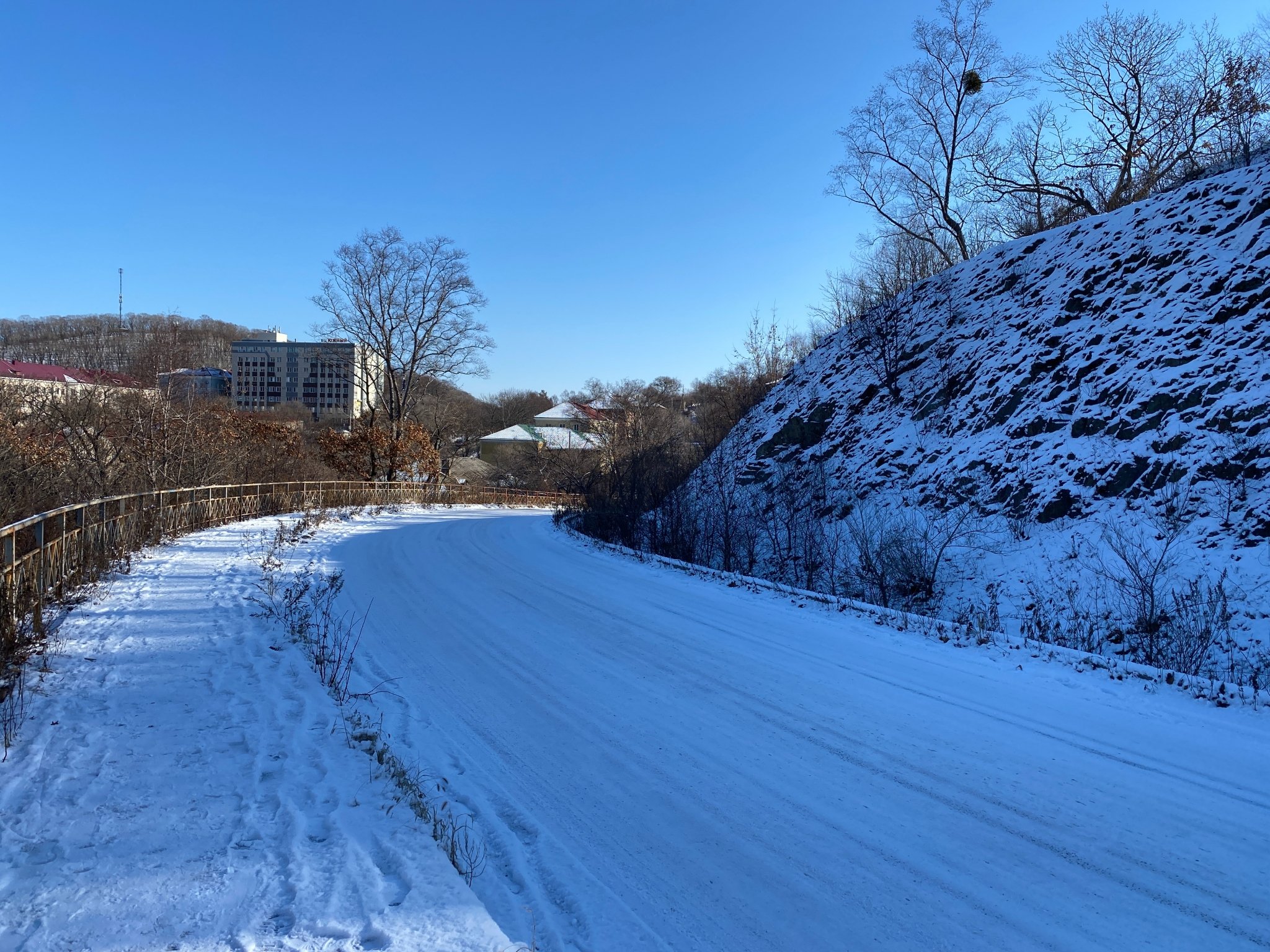 В ночь на 1 декабря в Находке выпал первый зимний снег. В самом городе это не привело к большим проблемам, и даже добавило красоты. Но на трассе на Врангель из-за обледенения дороги машины встали в пробку. Многие обоздали на работу.