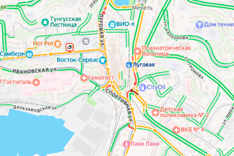 В эти минуты во Владивостоке собралась колоссальная пробка из-за серьёзного ДТП с участием автобуса. Авария произошла сразу после поворота с улицы Луговой на Гайдамак — одном из ключевых транспортных узлов столицы ДФО.
