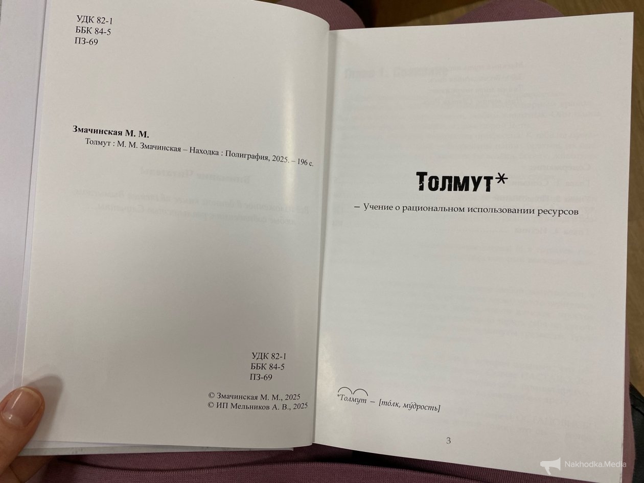 — Это моя вторая изданная книга. Первую я издала в единственном экземпляре, потом… сожгла. Так сложилось. "Толмут" — вторая книга, но официальная первая. Она о жизненной философии. Мне очень интересен человек, его психика, и это такой некий микс между философией и нейробиологией. В названии книги слово авторское от производных "толк" и "мудрость". Есть священная книга иудаизма Талмуд (12+). Они схожи по звучанию.