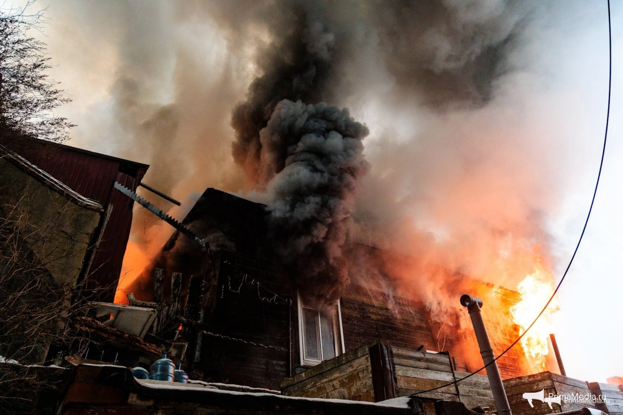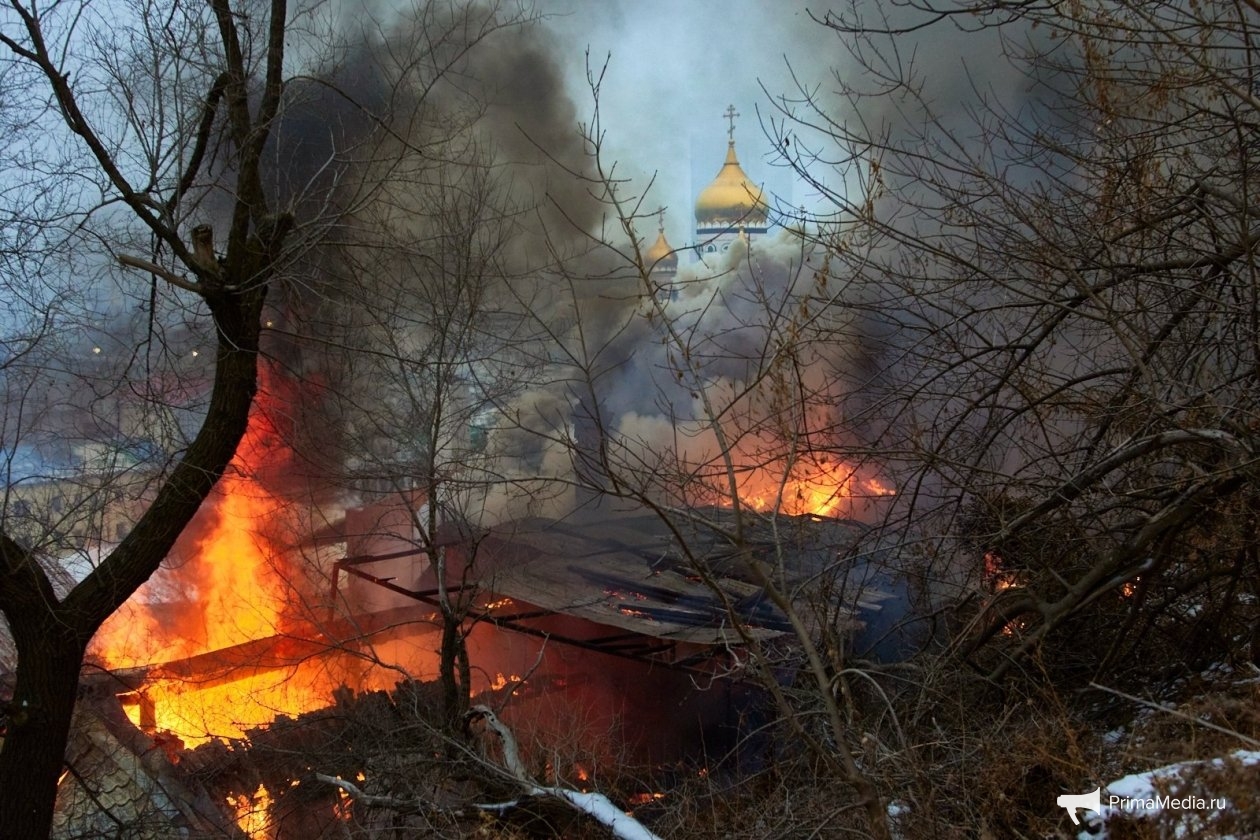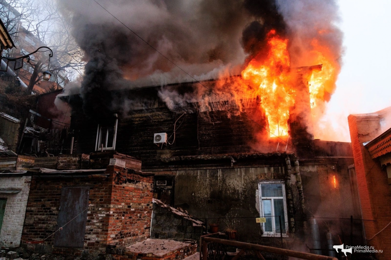 Исторический пожар: как горели здания в Почтовом переулке Владивостока — фоторепортаж Площадь возгорания превысила 300 квадратных метров