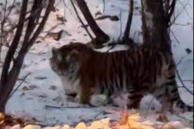Момент встречи она успела заснять на видео. На кадрах запечатлен крупный, хорошо упитанный тигр, который ненадолго остановился, будто давая человеку возможность его рассмотреть. Девушка описывает произошедшее как эмоциональное и почти волшебное событие. В конце встречи хищник демонстративно покинул место обитания.