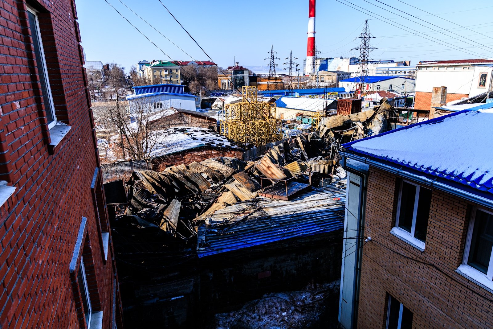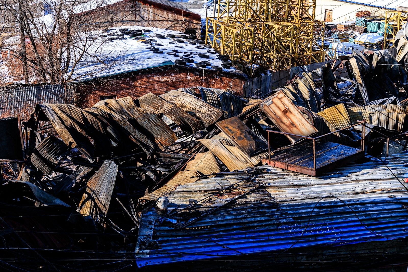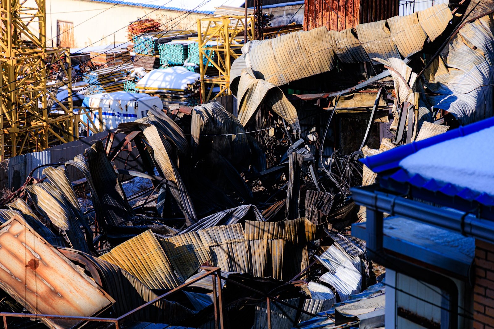 Тишина и запах гари. Так выглядит территория мебельного склада на Пограничной, 15 "в" на следующее утро после масштабного пожара. Там, где больше суток назад бушевало пламя и клубился черный дым, сейчас — обугленные руины. Фотокорреспондент ИА PrimaMedia запечатлел, во что превратился склад после нескольких часов борьбы с огнем.