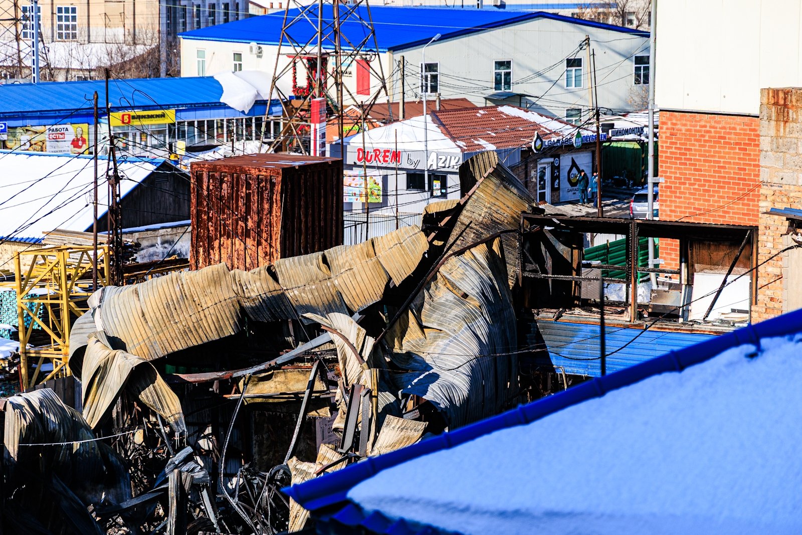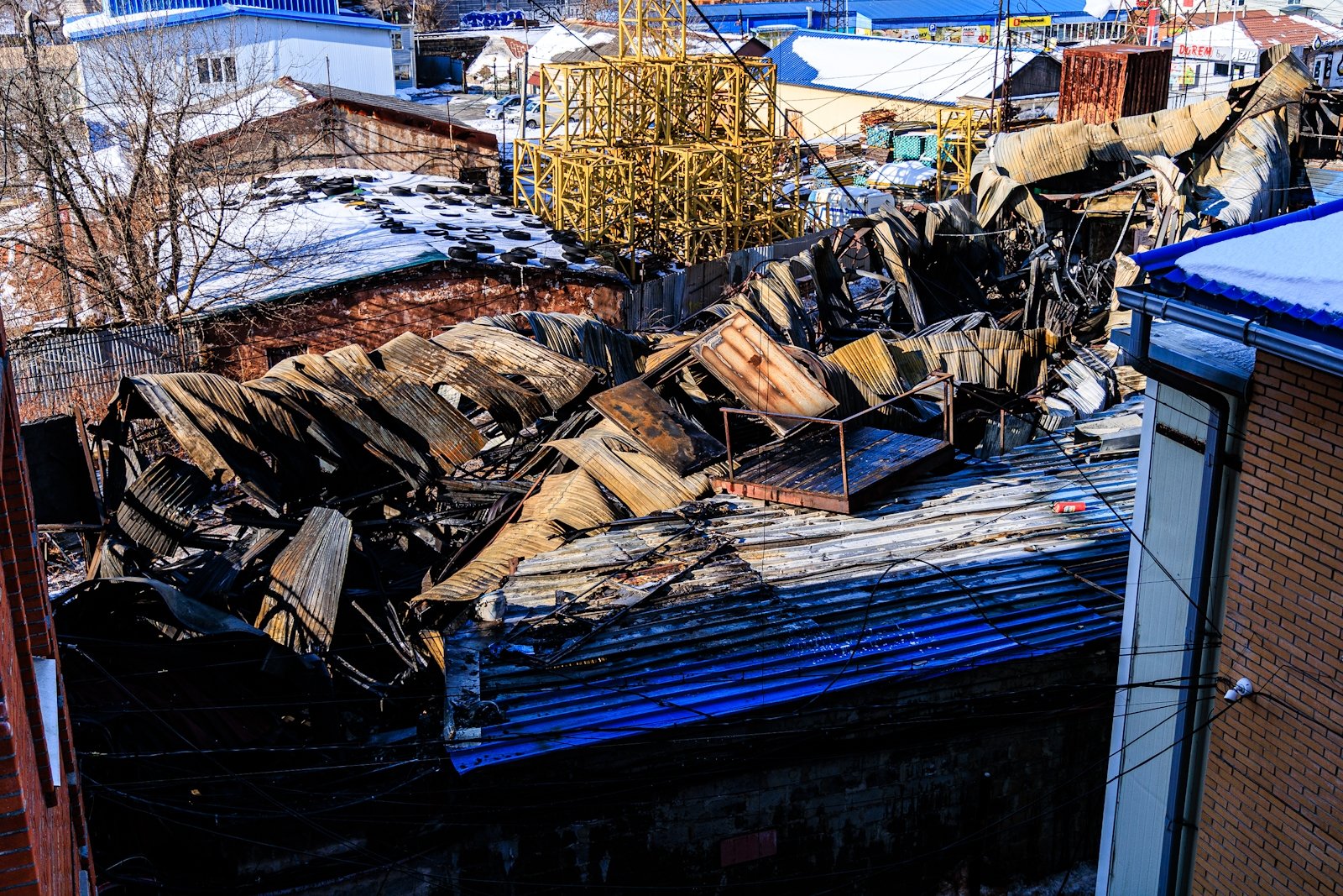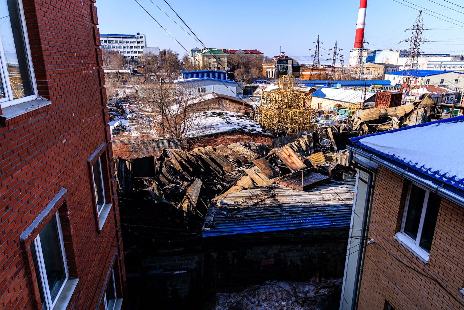 Тишина и запах гари. Так выглядит территория мебельного склада на Пограничной, 15 "в" на следующее утро после масштабного пожара. Там, где больше суток назад бушевало пламя и клубился черный дым, сейчас — обугленные руины. Фотокорреспондент ИА PrimaMedia запечатлел, во что превратился склад после нескольких часов борьбы с огнем.