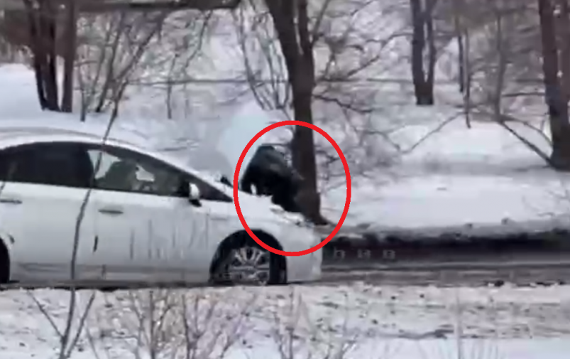 На предоставленной видеозаписи видна машина марки "Тойота Приус". Самый неожиданный момент заключается в том, что она ехала по дороге с поднятым капотом, в то время как под этим самым капотом находился человек. Видимых и скрытых причин для такой опасной езды приморцы так и не придумали.