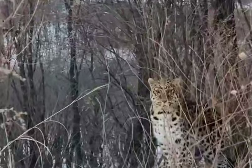 В Приморский крае местные жители стали свидетелями редкой встречи с дальневосточным леопардом. Хищника удалось запечатлеть на камеру автомобиля неподалёку от границы национального парка Земля леопарда.