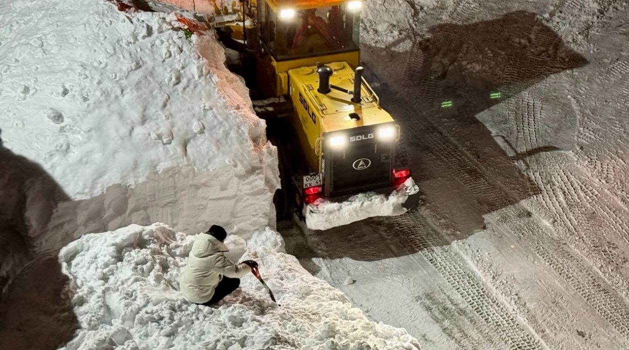 "Трактор к нам приходит", — песенка повеселее рекламной. Когда расчистка добирается до твоего двора, заснеженного выше человеческого роста, где тропинки вьются по утоптанным сугробам, а машины стоят внизу в глубоких ямах, на улицу приходит праздник. Чтобы мы не забыли, как это — фоторепортаж ИА KamchatkaMedia.