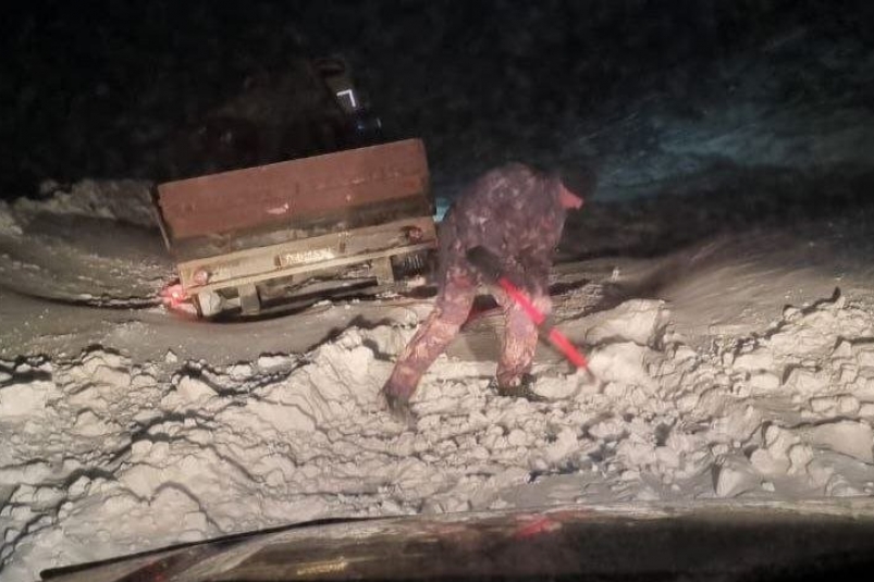 По предварительным данным несколько дней назад на перевале Гусакова в Тенькинском муниципальном округе на проезжей части образовался снежный перемет, препятствующий свободному движению транспортных средств.