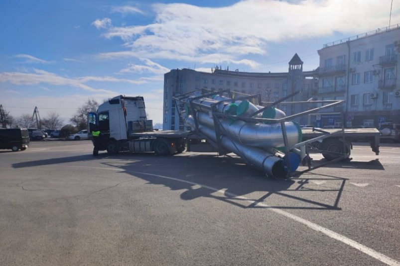Nakhodka.Media, 3 февраля. В Находке перед зданием мэрии на Центральной площади опрокинулся негабаритный груз с автомобиля Volvo, в результате чего часть груза перегородила проезжую часть. В результате ЧП пострадавших нет.