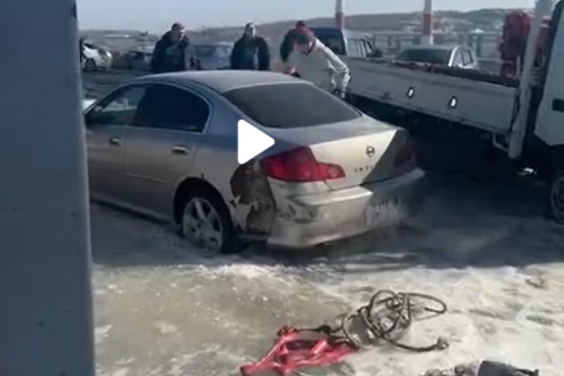 Во Владивостоке, в районе улицы Нейбута, каждую ночь парковка превращается в каток из-за воды, которая течет с соседней автомойки. Когда наступают сильные морозы, лёд сковывает машины, не позволяя им покинуть стоянку.