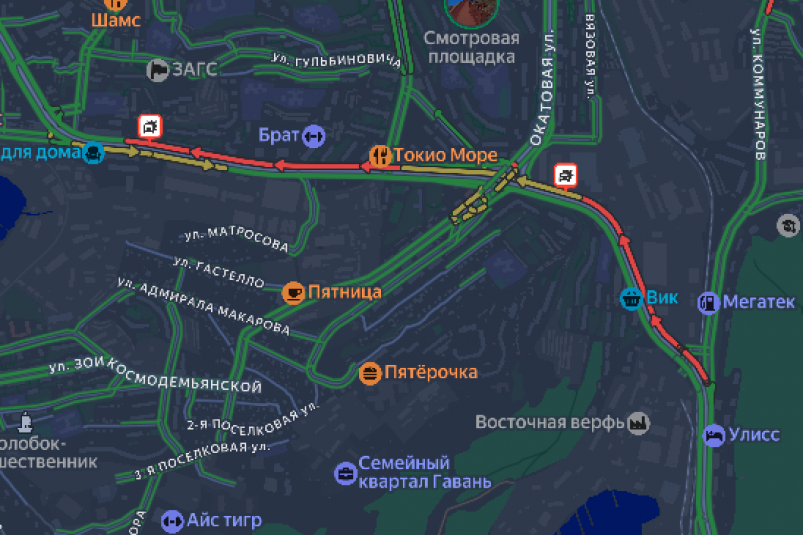Из-за аварии на дороге возник многокилометровый затор, который тянется со стороны Катерной улицы.