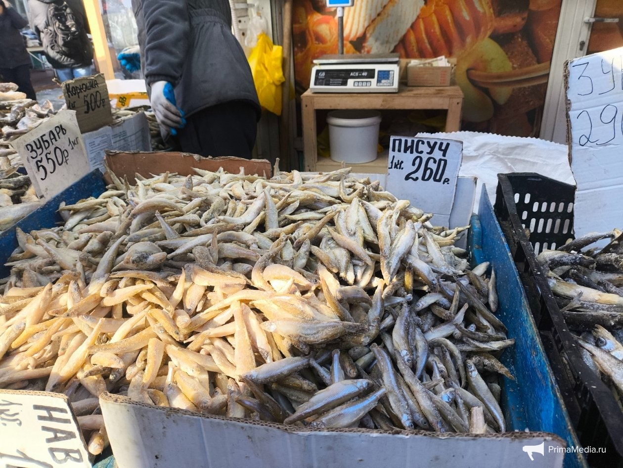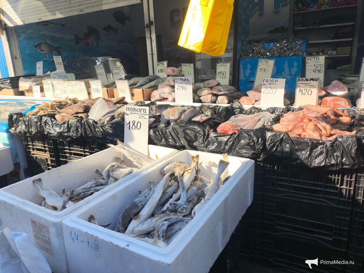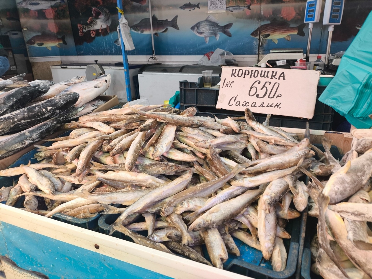 На рынке Баляева цены и вовсе бьют рекорды: корюшка достигает планки в 1500 рублей, будто сошедшая с прилавка дорогого ресторана. Мороженая навага здесь — 220 рублей.