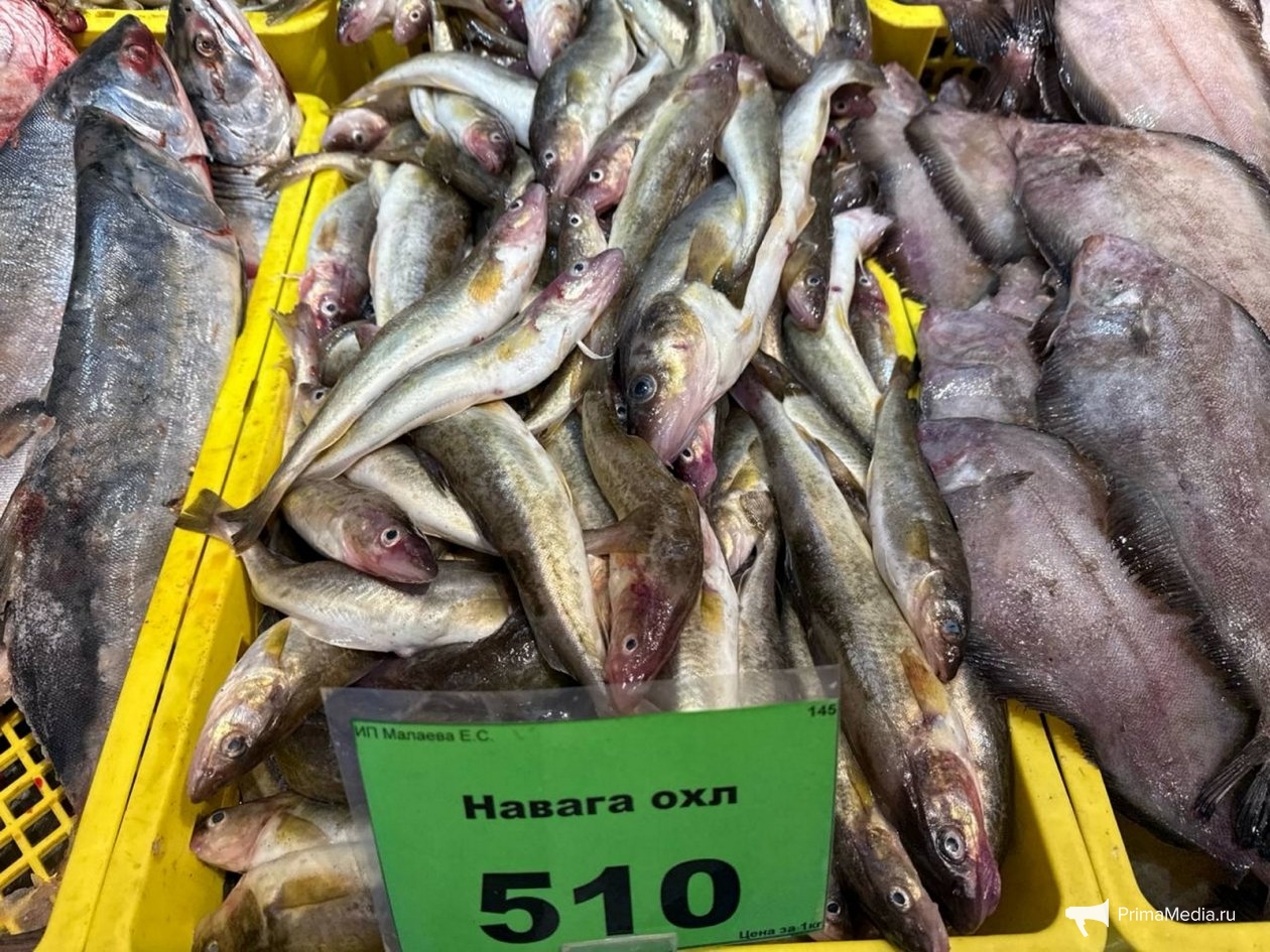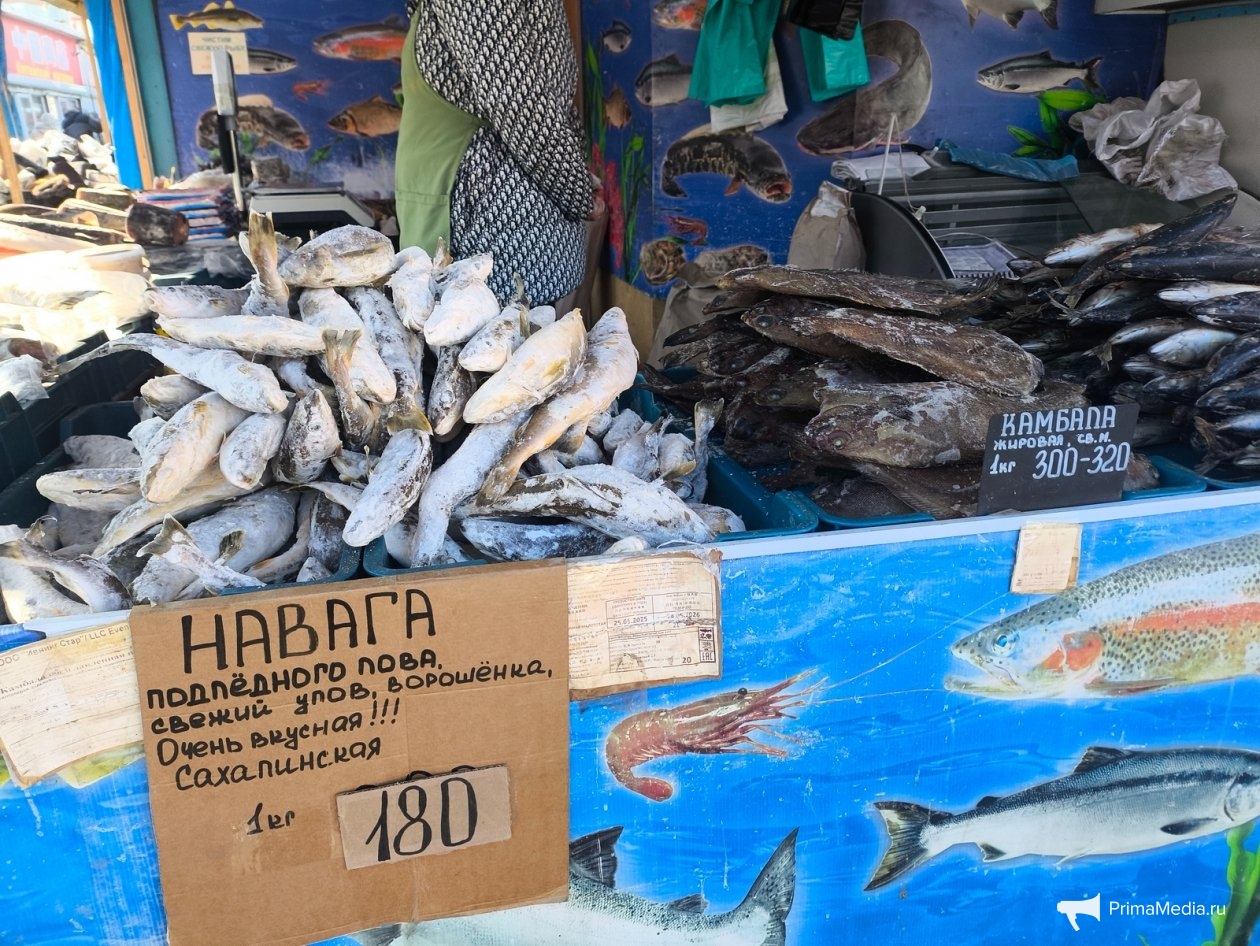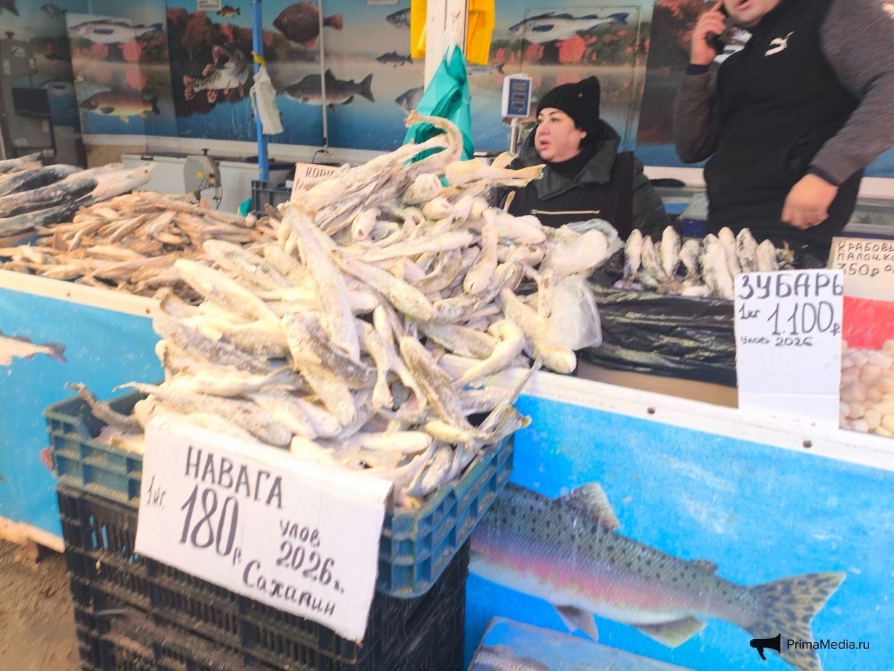 На рыбном рынке на Второй Речке, картина пестрее и амбициознее. Здесь уже можно найти навагу охлажденную, "которая совсем недавно плавала", за 510 рублей. Но главная героиня — корюшка — представлена во всём разнообразии: крупная охлажденная — 750 рублей, изысканный "зубарь" — 1300, подледного лова — 1150, а эксклюзивная с икрой из Де-Кастри — 950 рублей за килограмм. Простая навага здесь — 210 рублей.