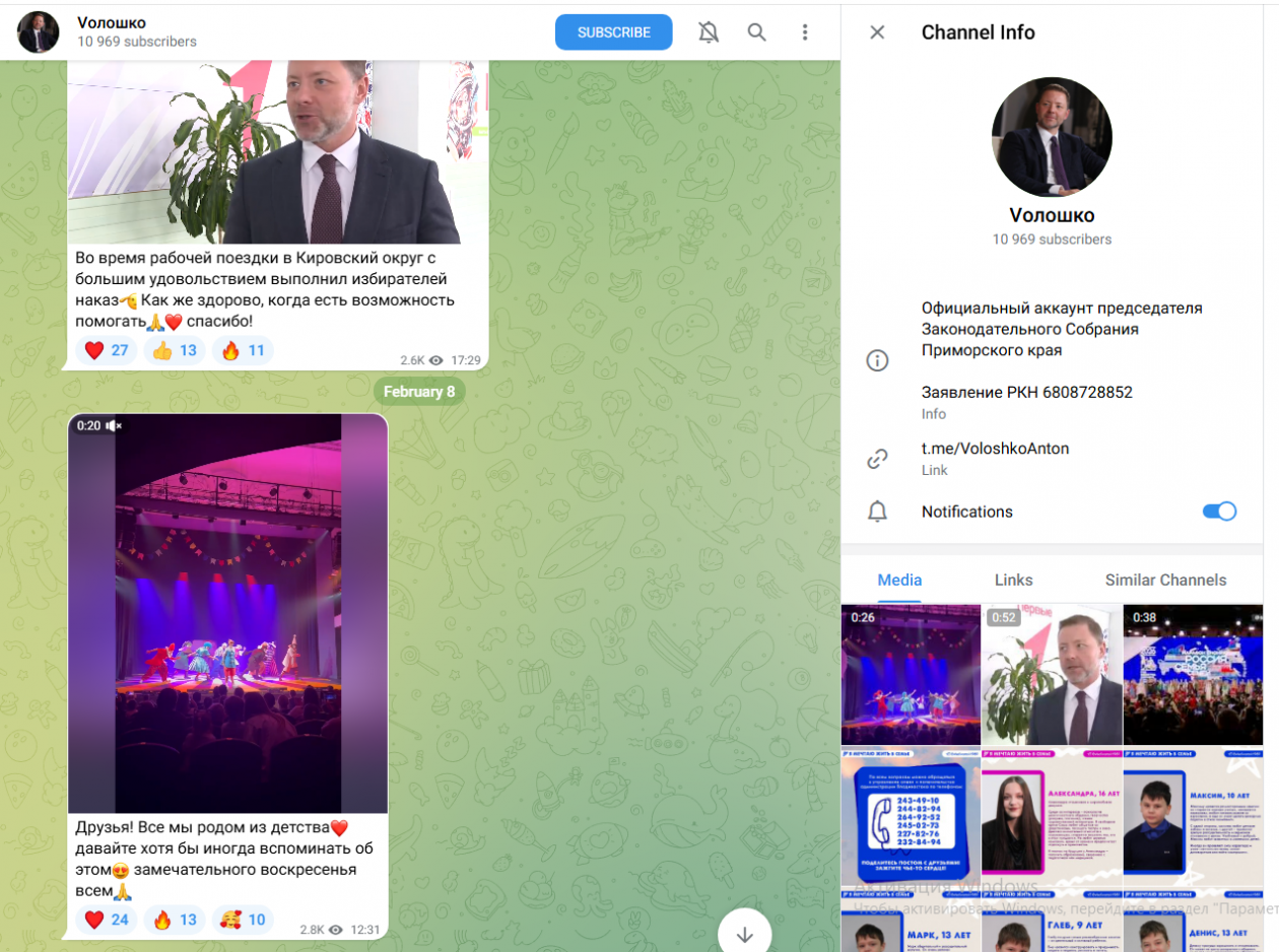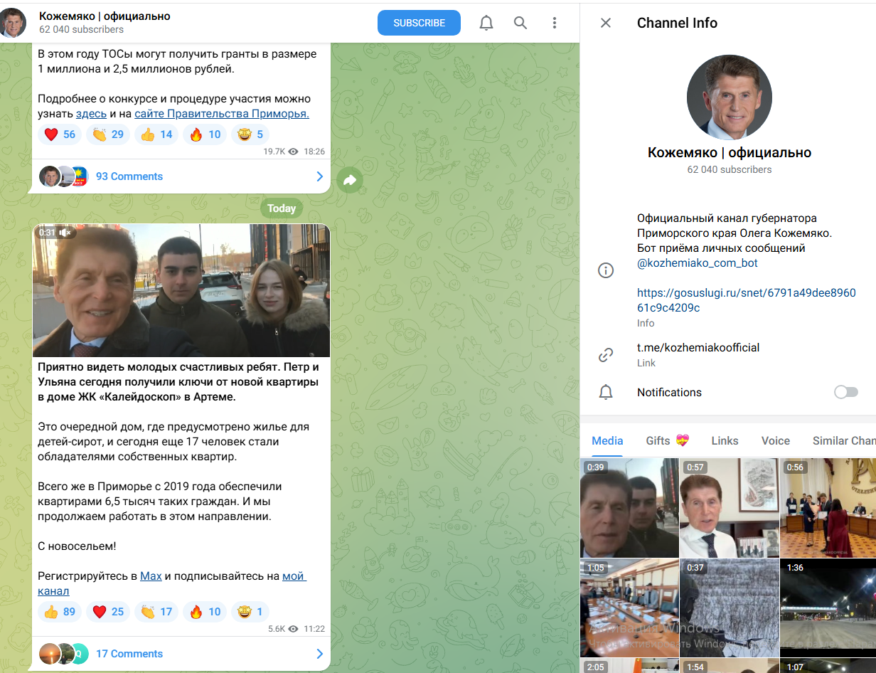 Всего на канал правительства Приморского края подписаны свыше 39,6 тыс. человек. Выше цифры только во "ВКонтакте" (16+), там постоянная аудитория составляет 66,7 тыс. человек. А вот в Max пока совсем негусто — 6,3 тыс. подписчиков, это менее 10% от полной аудитории. Тем временем Telegram-канал администрации Владивостока насчитывает более 24 тыс. человек.