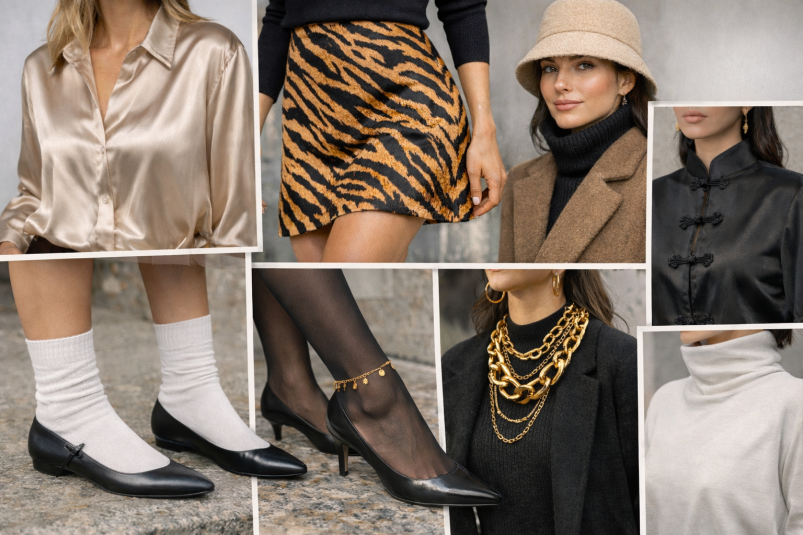 В моде аккуратные отсылки: воротник-стойка мао, вертикальные застежки, силуэты с намеком на ципао. Берите одну "восточную" вещь и миксуйте с базой (например, с джинсами) — так выглядит современно.