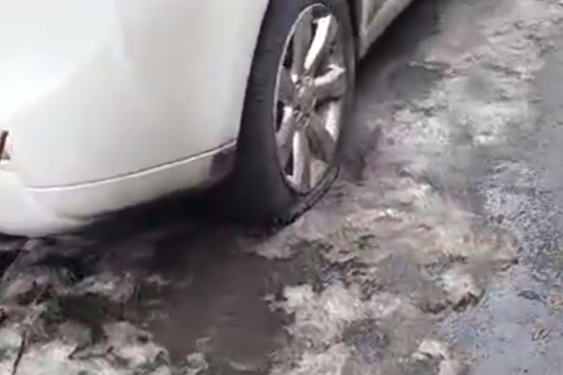 На видео, распространённом в местных пабликах и мессенджерах, видно, как на улице у подъездов стоят автомобили с полностью сдутыми шинами.