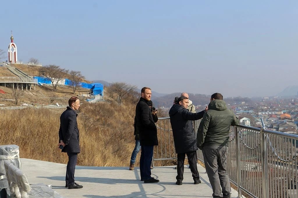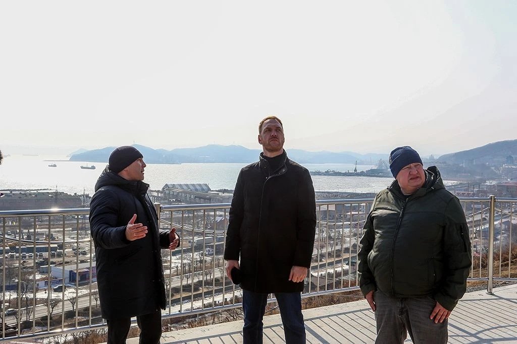 Nakhodka.Media, 24 февраля. Глава Находкинского городского округа Тимур Магинский совместно и заместитель исполнительного директора АО "Находкинский завод минеральных удобрений" (НЗМУ) Кириллом Тихоновичем проинспектировали строительство сквера "Панорамный" на сопке Лебединой. Общественное пространство создается на средства федерального гранта, выигранного во Всероссийском конкурсе проектов комфортной городской среды. Проект благоустройства был разработан при поддержке НЗМУ.