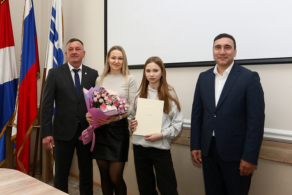 Документы вручили глава города Тимур Магинский и председатель городской Думы Андрей Кузнецов.