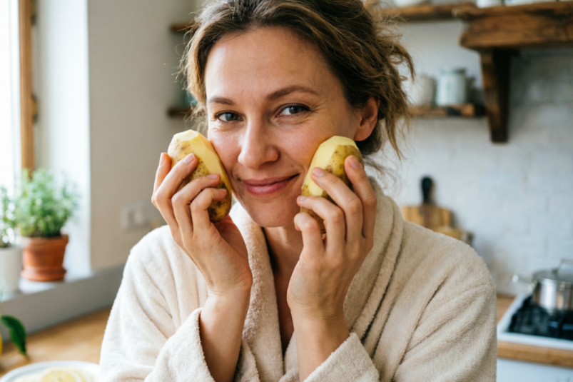 Кроме того, картошка редко вызывает аллергию, поэтому подходит даже для самой чувствительной кожи. Но все равно важно следить за своими противопоказаниями и предварительно провести тест на запястье.