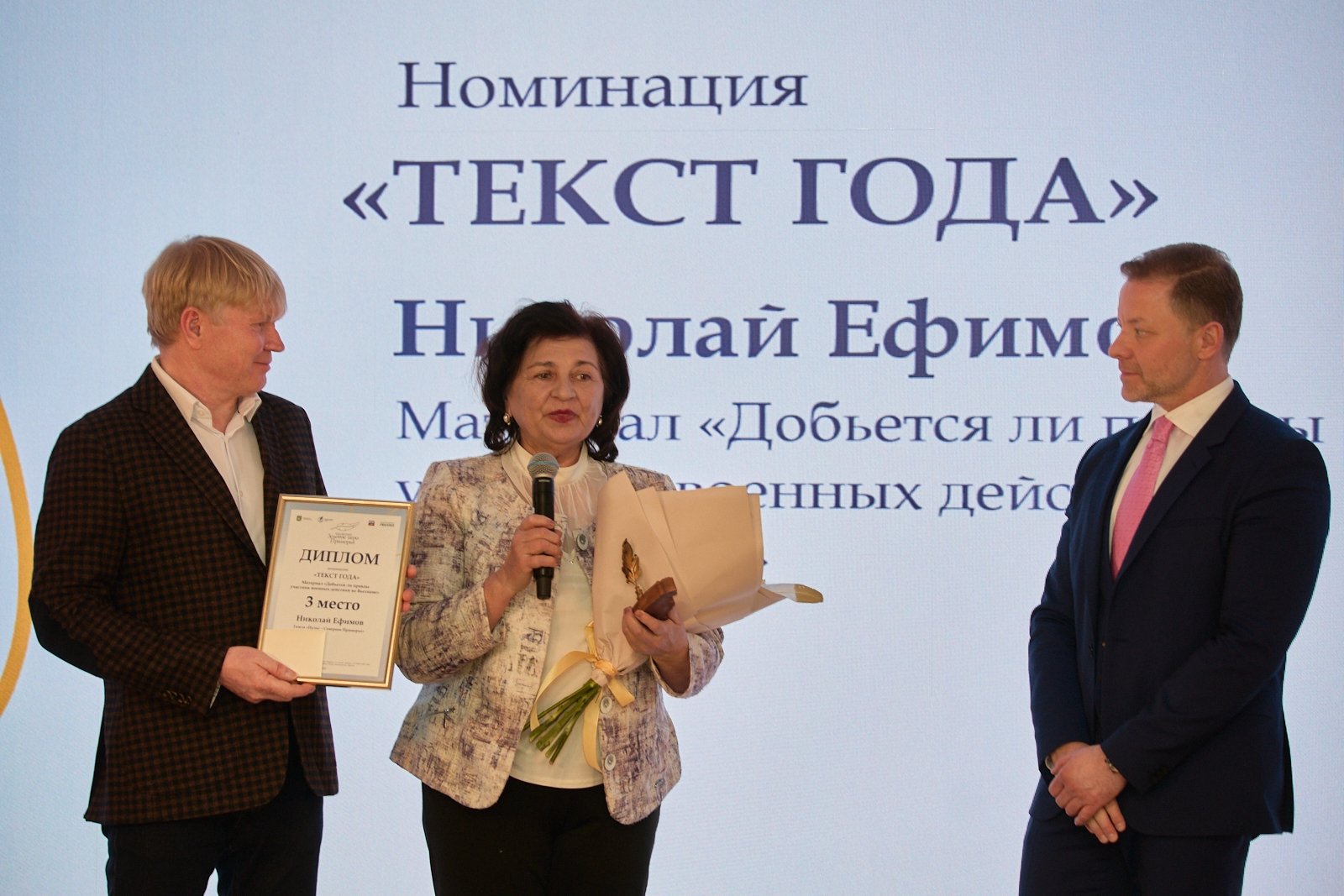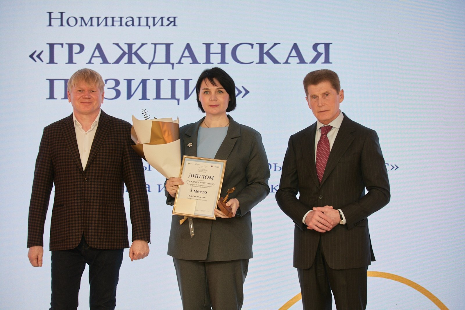 Оригинальные награды и слова благодарности за высокий профессионализм и гражданскую позицию победители конкурса принимали от Губернатора Приморского края Олега Кожемяко, председателя Законодательного Собрания Приморского края Антона Волошко, главы администрации Владивостока Константина Шестакова, председателя Думы города Владивостока Андрея Брика, председателя Федерации профсоюзов Приморского края Дмитрия Кравченко, председателя Приморского отделения Союза журналистов России Виктора Суханова и корифеев приморской журналистики — Сергея Булаха, Владимира Ощенко, Андрея Островского, Александра Сырцова.