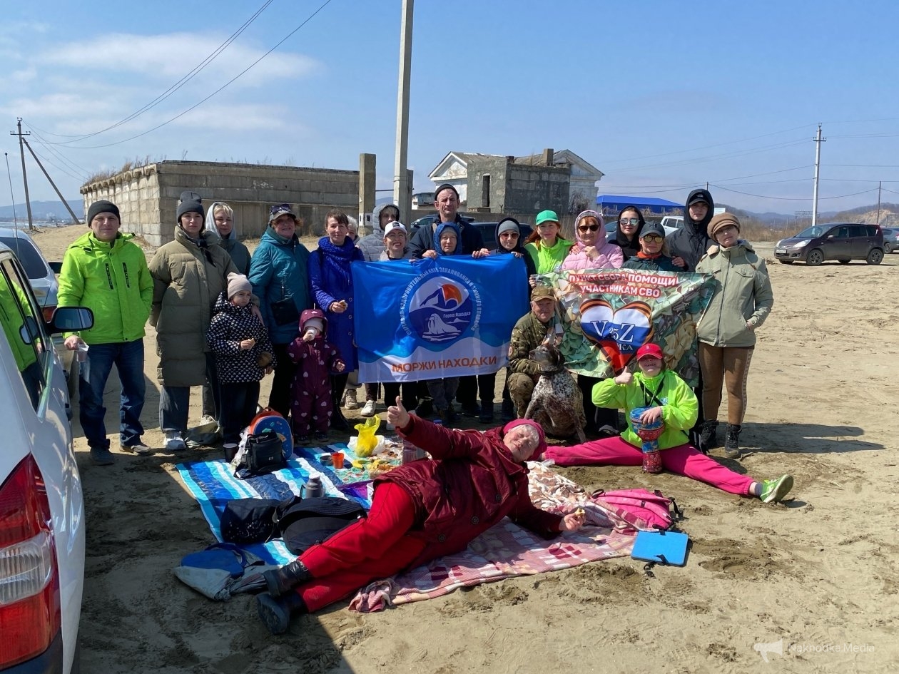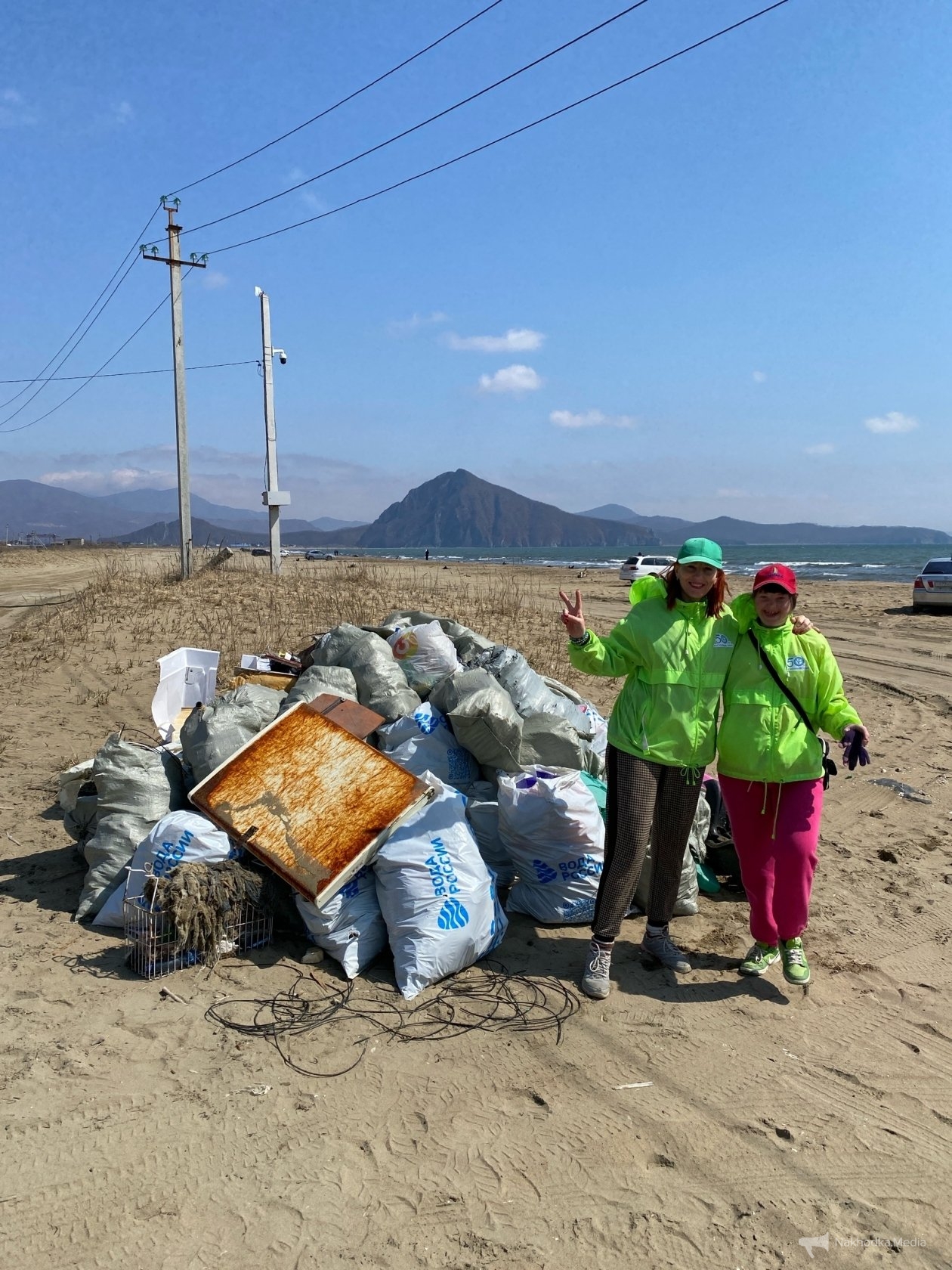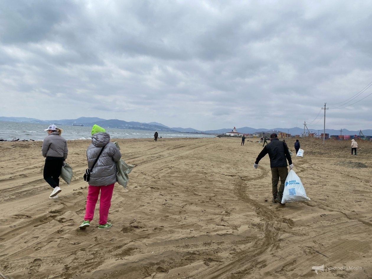 Еще одну зону на пляже (вплоть до маяка) взял под крыло клуб "Моржи Находки" под руководством Ольги Степыкиной, которая помогла собрать множество откликнувшихся людей.