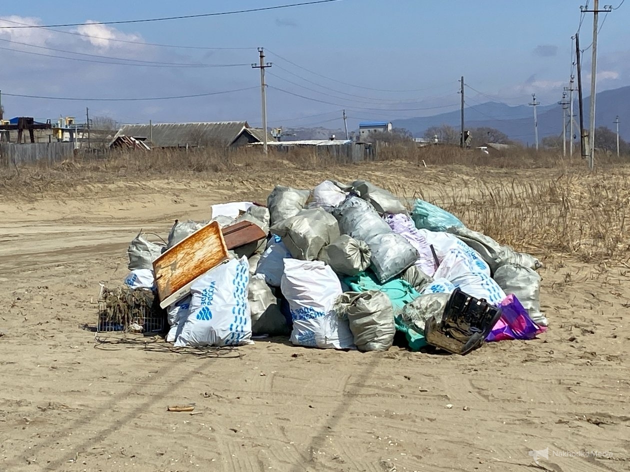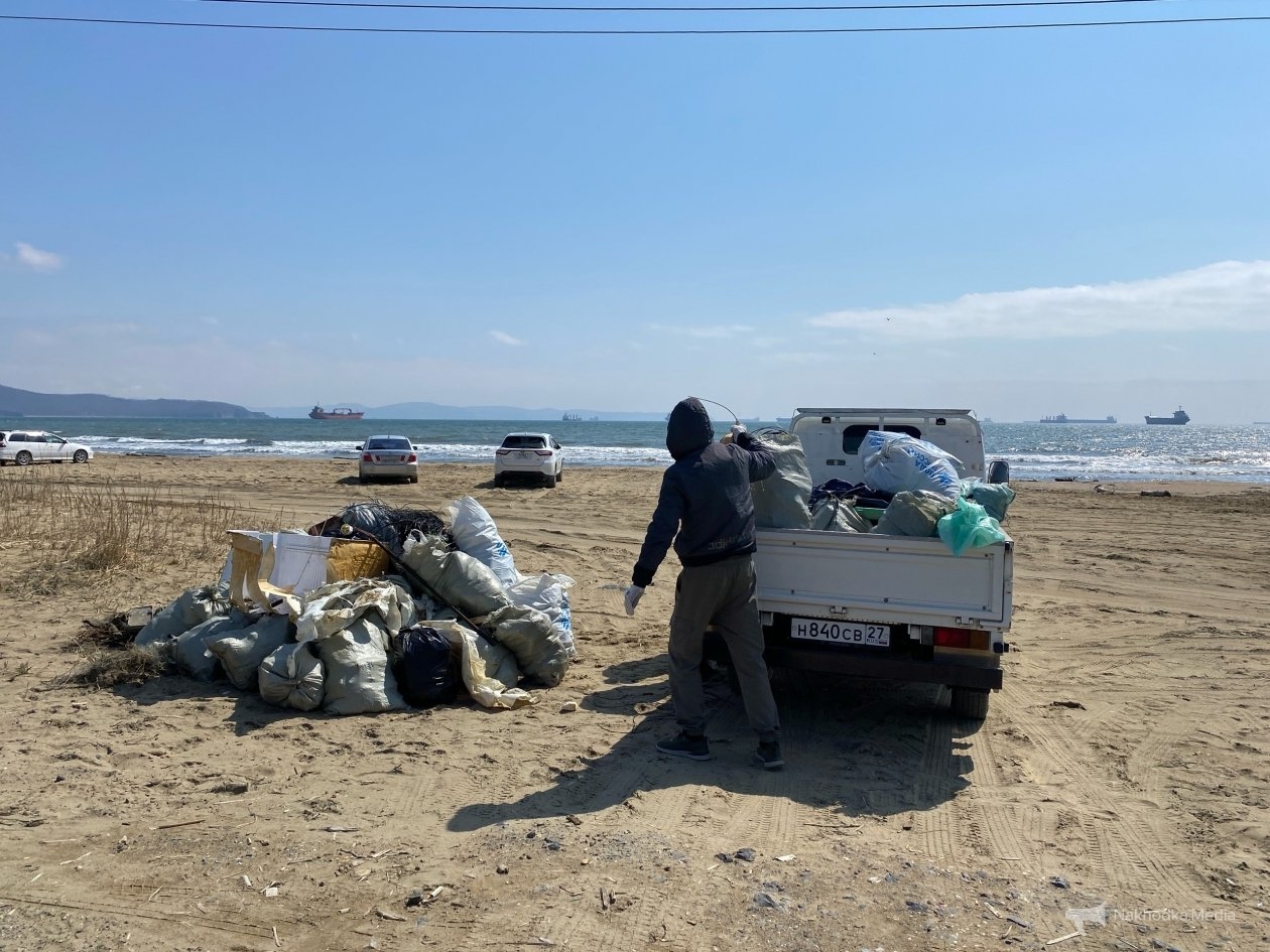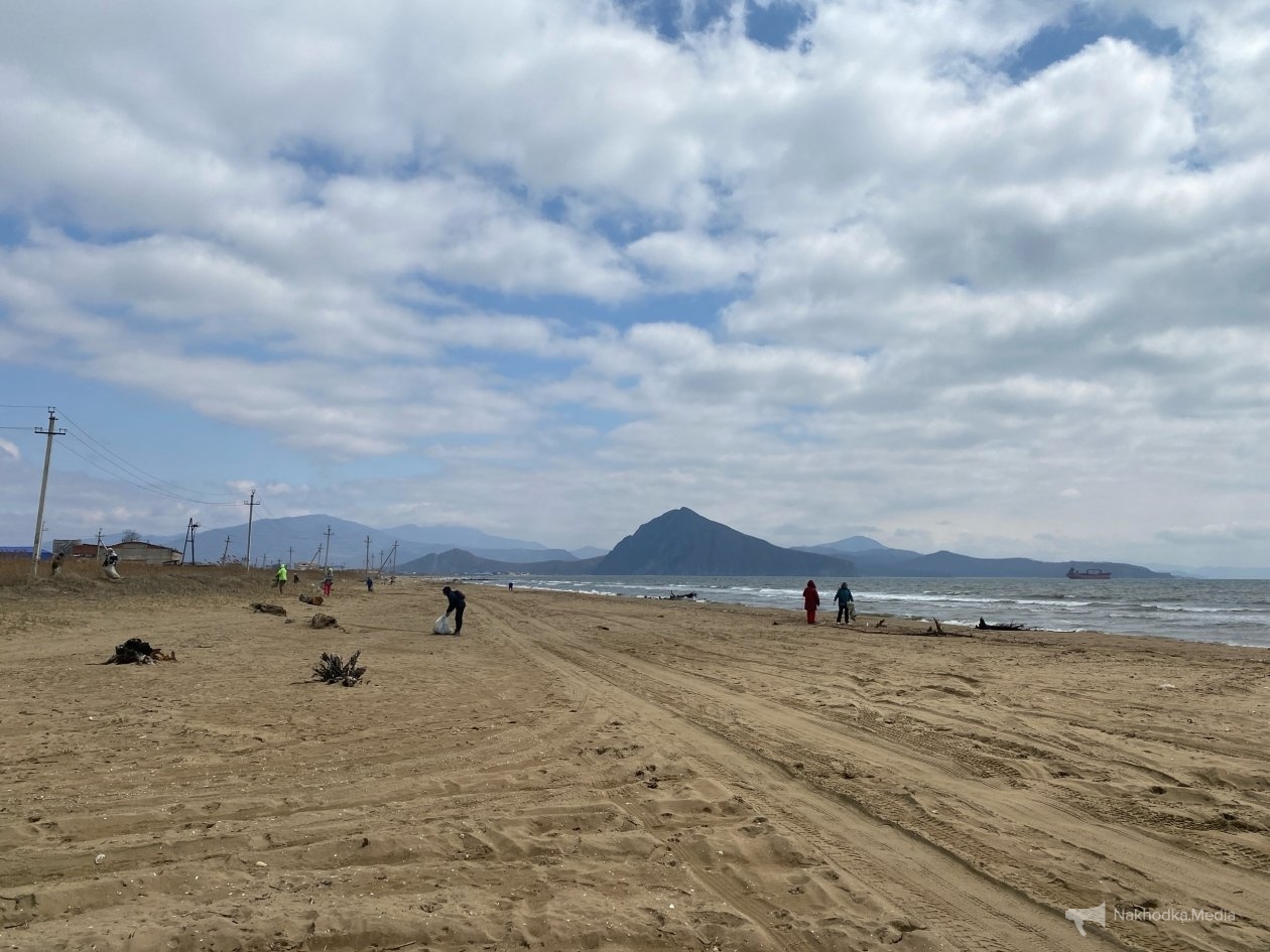 Еще одну зону на пляже (вплоть до маяка) взял под крыло клуб "Моржи Находки" под руководством Ольги Степыкиной, которая помогла собрать множество откликнувшихся людей.