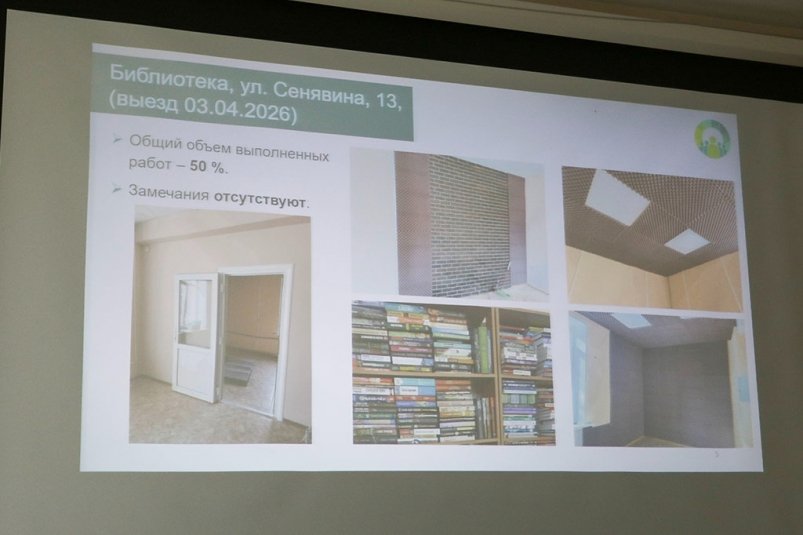 Сквер у МЦК готов на 75%. В Музейно-выставочном центре работы только начались: выполнено около 10%, сейчас готовят фасад к утеплению. В библиотеках на улицах Горького и Сенявина завершают внутреннюю отделку и обустраивают тематические залы.