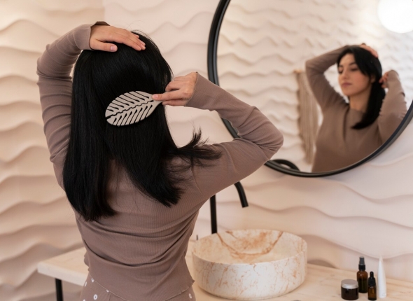 Редкое использование стайлинг-устройств: Постоянное использование фена, утюжка для выпрямления волос или плойки может ослабить волосы.