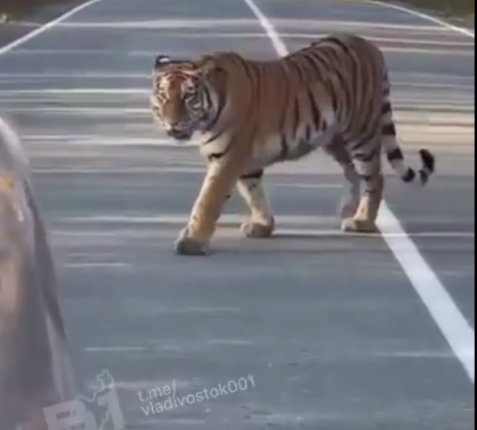 По сообщениям местных жителей, хищник проявляет необычную активность. Один из таких моментов попал на видео. Хищник вышел на дорогу, когда поблизости находились люди. Он дождался, пока они сядут в машину, и шел за ними некоторое время, пока автомобиль не уехал с его территории.