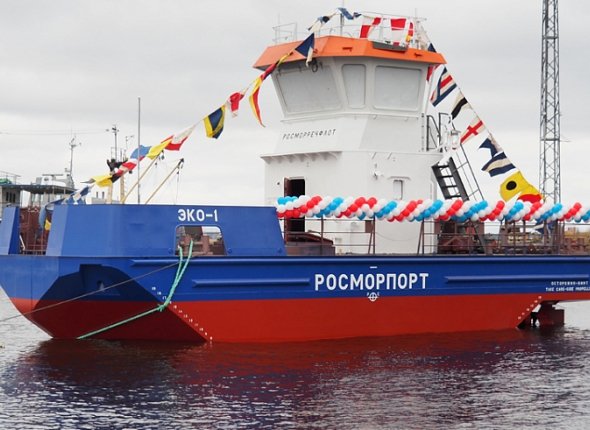 СПРАВКА: Нефтемусоросборщики проекта NE028 МНМС строят по заказу ФГУП "Росморпорт". Предназначен для сбора воды и транспортировки плавающего мусора, а также обводненных нефтепродуктов с температурой вспышки выше 60 °С (дизельное, тяжелое топливо и масла) без захода в нефтяное пятно.