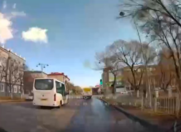 В Уссурийске замечен водитель автобуса, который грубо нарушил ПДД. Он на высокой скорости проехал на желтый сигнал светофора.
