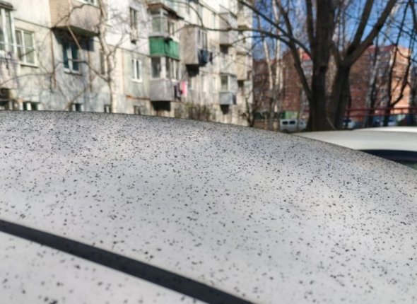 Nakhodka.Media, 17 ноября. Черные "мухи" нервируют водителей Приморья. В местных соцсетях появились кадры с автомобилем, который усыпало сажей.