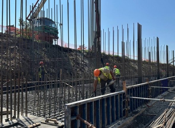 На данный момент Дальтрансуголь возводит фундамент третьего ветрозащитного экрана. Уже вырыт котлован глубиной 5 метров для обеспечения устойчивости конструкции, подготовлено основание из щебня и смонтирован арматурный каркас. Общий объем подземных железобетонных конструкций составит 3,2 тысячи кубических метров, вес наземной части экрана — 740 тонн. Работы выполняет компания "Револют" (г. Санкт-Петербург). На площадке задействовано 5 единиц спецтехники и 15 специалистов.