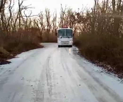 В районе бухты Воевода гравийная дорога покрылась толстой коркой льда. Машины, рейсовые автобусы разворачивает прямо на дороге. По сообщениям подписчика, мусоровоз не смог преодолеть подъем, его снесло на обочину.