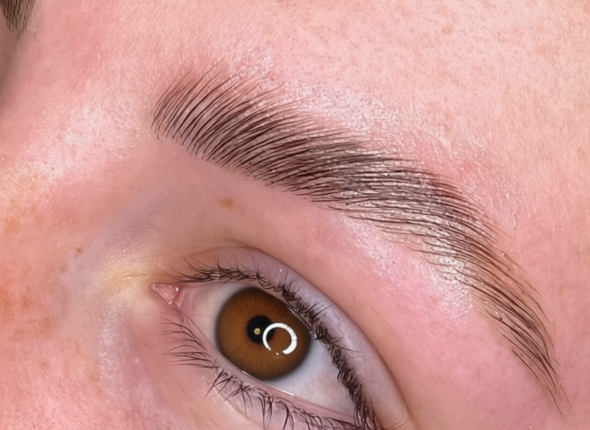 Речь идёт о ламинировании бровей — процедуре, которая надолго делает волоски гладкими и послушными. Специальные составы мягко воздействуют на структуру волоса, фиксируют нужное направление и придают аккуратный, ухоженный вид.