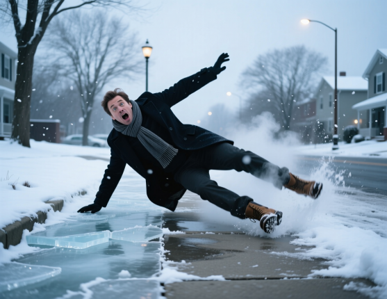 Nakhodka.Media, 24 декабря. Снег с дождём, прошедший во вторник, 23 декабря, оставил после себя не только слякоть, но и коварную ледяную корку на тротуарах. Для многих горожан утро среды превратилось в настоящее испытание: скользкие ступени, замёрзшая каша у подъездов и обледеневшие пешеходные зоны.
