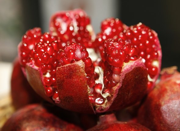 У спелого граната есть угловатые, слегка впалые бока. Также кожура должна быть жёсткой и даже подсушенной, а вес спелого плода всегда тяжёлый для своего внешнего вида.