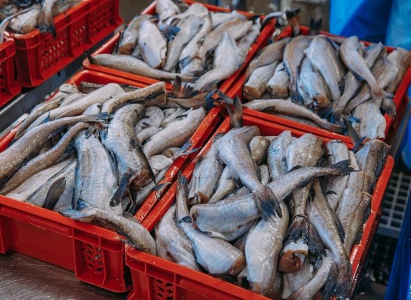 Самым рыбным местом пока можно назвать рынок на Спортивной. Здесь несколько точек, где торгуют рыбой прямо на улице, хотя и холодильники тоже есть. Однако в отличие от прошлых лет наваги немного. В продаже есть как улов этого сезона, так и прошлогодний. Например, в одной из точек предлагают камчатскую навагу без головы по 160 рублей за килограмм. Выглядит она не очень презентабельно, но в продаже ее немного — значит спрос есть. Кстати, указана дата вылова — 28 ноября 2025 года.