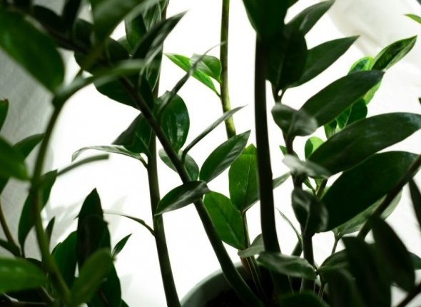 Замиокулькас предпочитает небольшой горшок, пересадку только при необходимости, редкий полив после полного высыхания земли, светлое место без прямых солнечных лучей и легкий рыхлый грунт.
