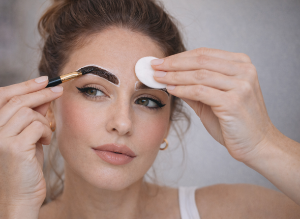 Смывать краску лучше поэтапно. Сначала — с начала брови, затем постепенно продвигаясь к изгибу и хвостику. Такой приём позволяет получить более естественный результат без чётких границ. Брови выглядят аккуратно, но не "нарисовано".