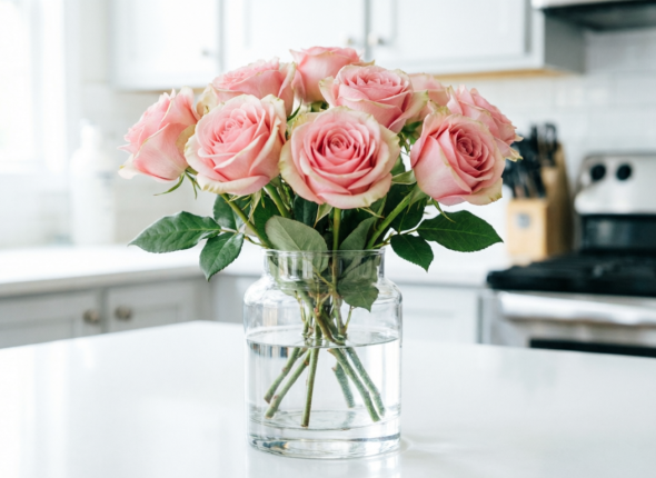 Все дело в том, что хлорка убивает бактерии, которые появляются в воде и портят цветы. Обычно именно бактерии заставляют стебли быстро гнить, а бутоны — опадать. Если добавить в вазу 1-2 капли такого средства, вода останется чистой, а розы будут стоять намного дольше.