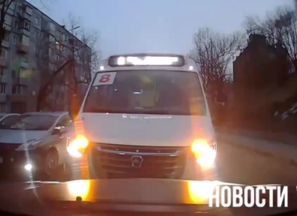 Однако, опасный маневр пришлось закончить, как только маршрутка уперлась во встречный автомобиль. Видео опубликовал tg-канал "newsvlru" (18+).