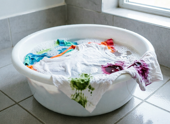 Смешайте глицерин и моющее в равных пропорциях, аккуратно нанесите на пятно и оставьте на 8–12 часов. За это время компоненты глубоко проникнут в волокна ткани и растворят органику. После этого одежду нужно просто постирать привычным способом — и все пятна исчезнут без следа.